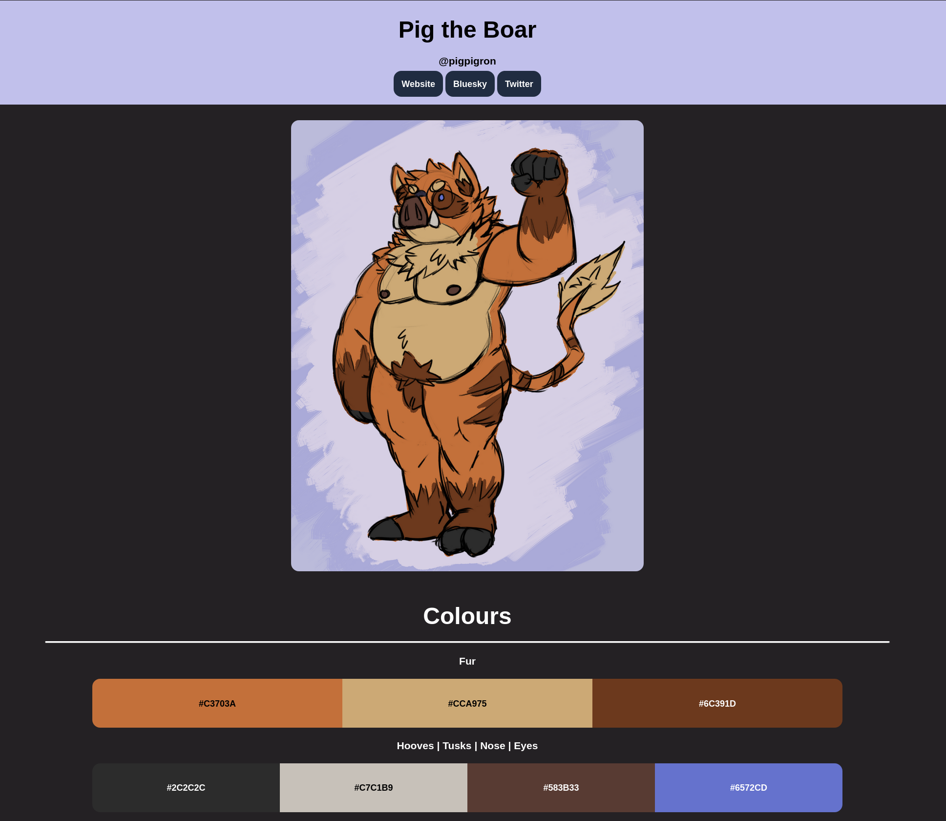 A site used for character references for myself and friends. It contains buttons to copy colour codes and may include several examples per character.